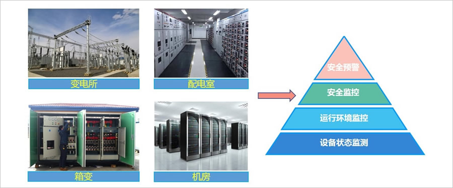 配(pèi)電室環境監控係統應用於變電站,當電(diàn)力設備出現(xiàn)故障或現場發生異常時(如:設備短(duǎn)路、電纜溫度過高、進水(shuǐ)、非法(fǎ)闖入(rù)等),能在第一時間自動采(cǎi)集信息,並向上級遠(yuǎn)方監控管理中心發送監測信息(數據、語音(yīn)、視頻等)和報信息。運維人員無需親臨(lín)現場(chǎng)即可及時了解設備運行狀態,直接對現(xiàn)場進行監聽、監視,對變電(diàn)站內(nèi)的供電提供了可靠保障。