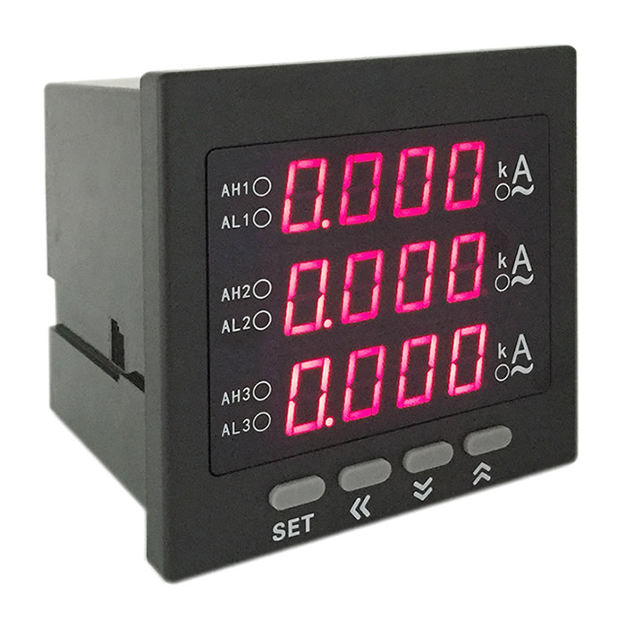 3.1 測量顯(xiǎn)示範圍:AC 0 ~10A(直接測量)、 AC 0~999.9kA(外附*/5A電流互感器)